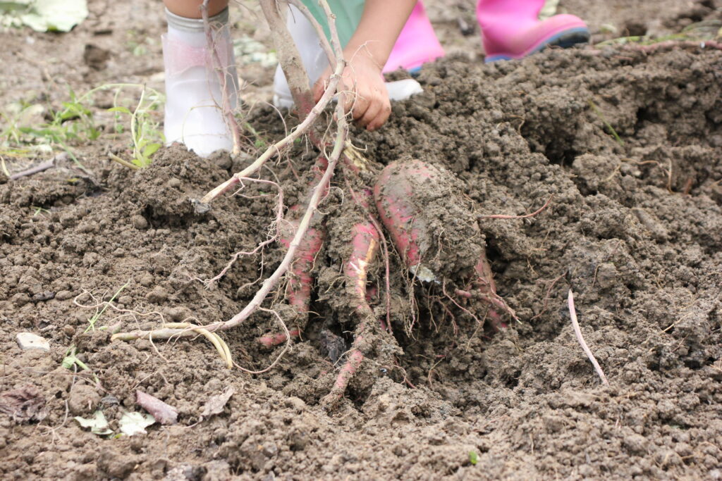 しかし、子ども達はそんなことお構いなし!!ひょっこり顔を出したお芋を発見!